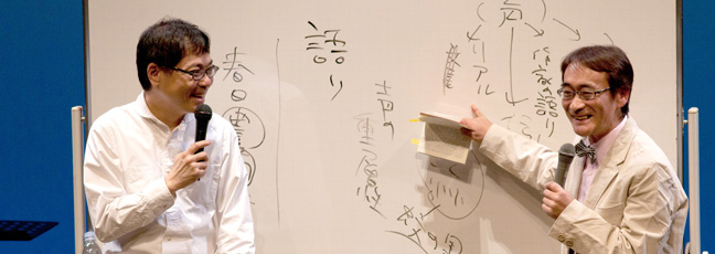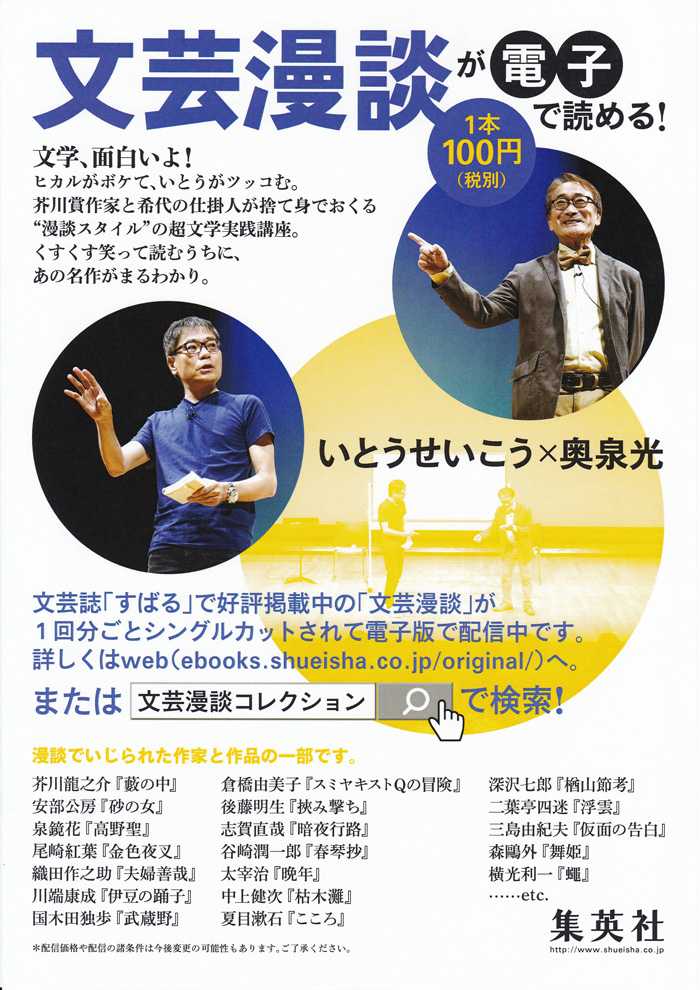 内容、構成はいたってシンプルで、文学作品を題材にし、笑いを盛り込み、二人で作品を語っていく、漫談形式のトークショーです。