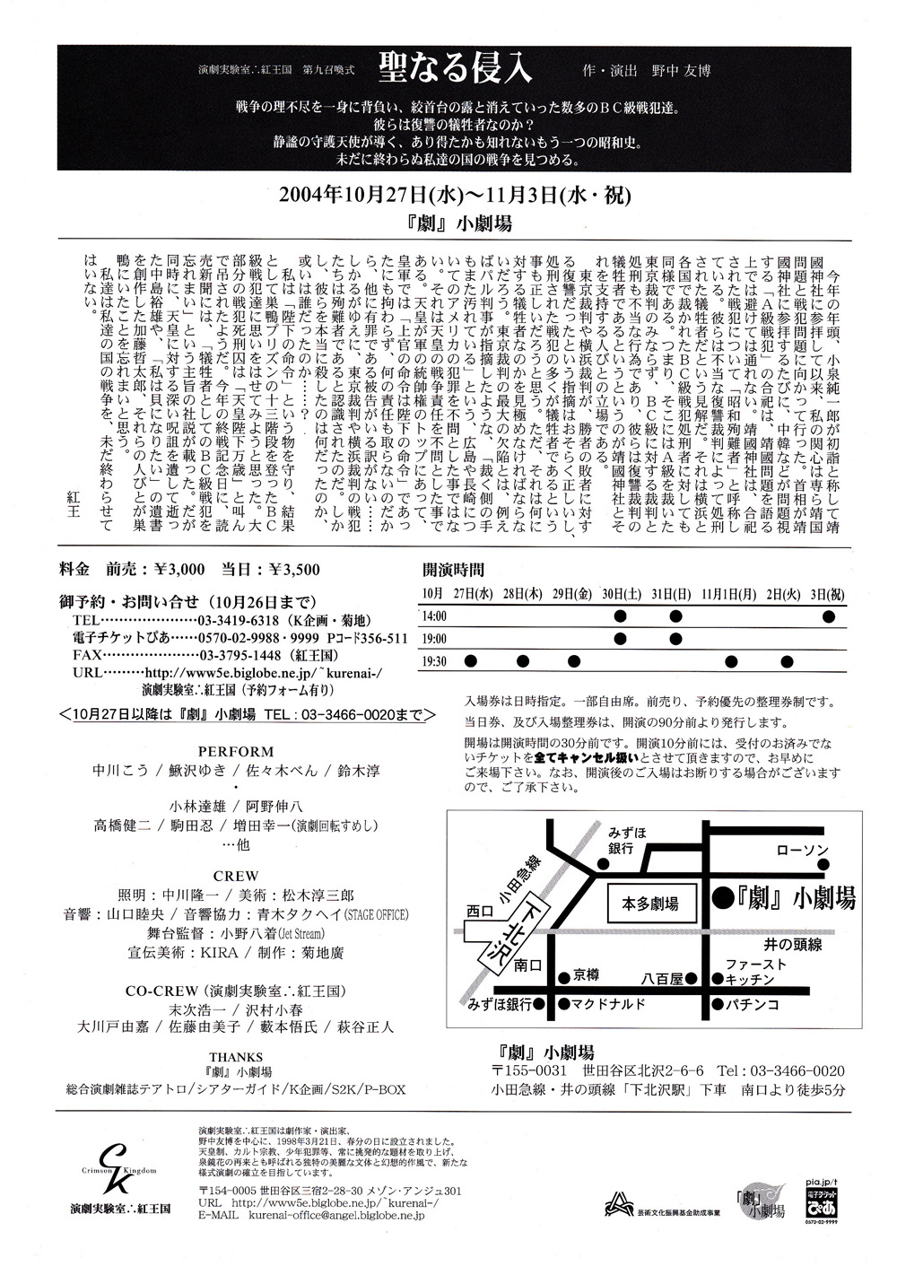 1999年 菅谷勇氏 難波圭一氏らの劇団 「TBワンスモア」10月公演「倭王伝」の 台本を担当。