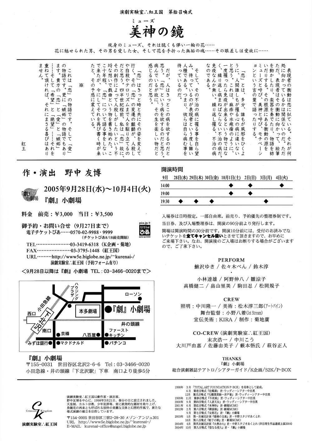 舞台監督 : 小野八着(Jet Stream) 宣伝美術 : KIRA 制作 : 菊地廣