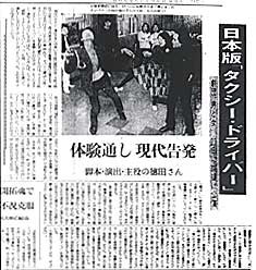 ささやかに一発で終わろうとした芝居が、劇場は連日超満員、その上、朝日新聞に「作・演出・主演を一手に引き受ける徳田実が現役の運転手だけに、そのリアリティは強烈だ。それも吉本新喜劇とアングラをミックスにした、ふかしぎな演劇の場を現前させる。・・・・人間への連帯に絶望した時、このドラマの存在感は重く胸を打ち、風俗は批評となる」と激賞する劇評まで出てしまった。
