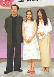 NHKテレビ「ほんまもん」制作会見 根津甚八、池脇千鶴、風吹ジュン (読売新聞社撮影) |