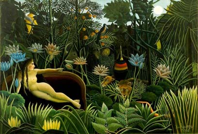 名画「夢」の密林の情景は、黒人ダンサーたちの踊リで表現します。